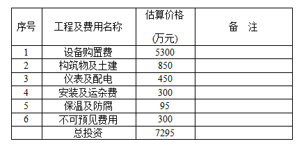項(xiàng)目總投資估算8000萬元。由于全裝置基本為304、316甚至更高的材質(zhì),裝置的建設(shè)造價(jià)受鋼材市場(chǎng)價(jià)格影響很大。
