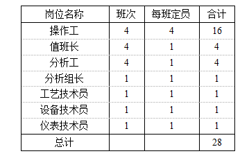 裝置定員不考慮行政管理人員,設(shè)備維修維護(hù)人員。