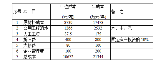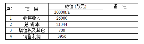 以年生產(chǎn)新戊二醇20,000噸為基準(zhǔn),每噸售價(jià)1.3萬元,年銷售收入26000萬元。