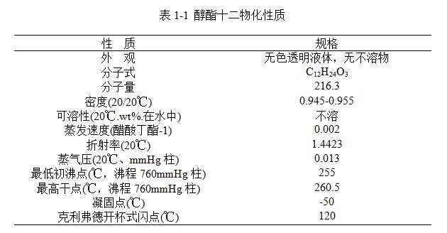 醇酯十二主要物化性質(zhì)見(jiàn)表1-1。