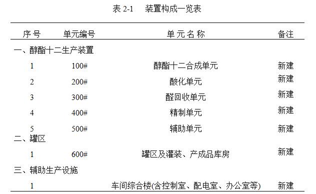 本項(xiàng)目為30kt/a醇酯十二生產(chǎn)項(xiàng)目。