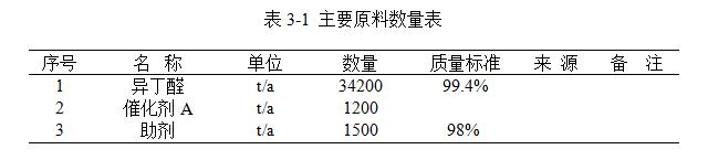 本項(xiàng)目生產(chǎn)所需主要原料、用量及規(guī)格見(jiàn)表3-1。