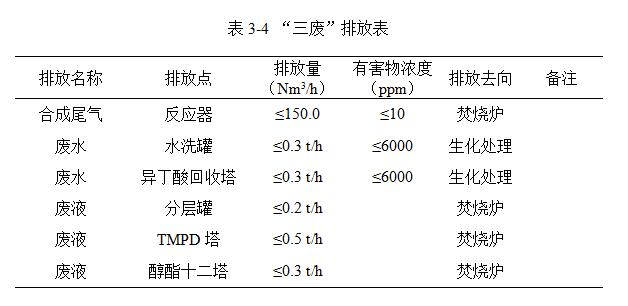 本項(xiàng)目生產(chǎn)過(guò)程中“三廢”排放見(jiàn)表3-4。