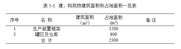 裝置區(qū)內(nèi)建、構(gòu)筑物占地面積及建筑面積見(jiàn)表5-1。