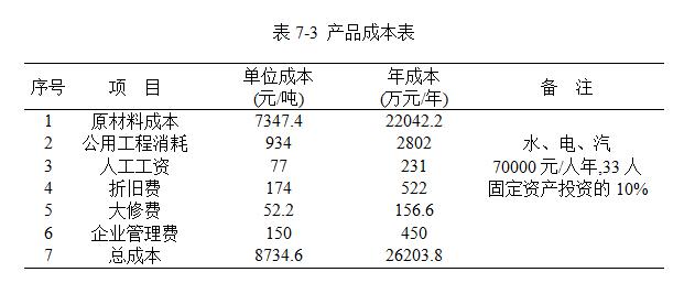 本項(xiàng)目年生產(chǎn)醇酯十二30,000噸,醇酯十二每噸售價(jià)1.5萬(wàn)元,年銷(xiāo)售收入45000萬(wàn)元(不含稅為38461萬(wàn)元)。