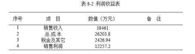 本項(xiàng)目利潤(rùn)與收益見(jiàn)表8-2。